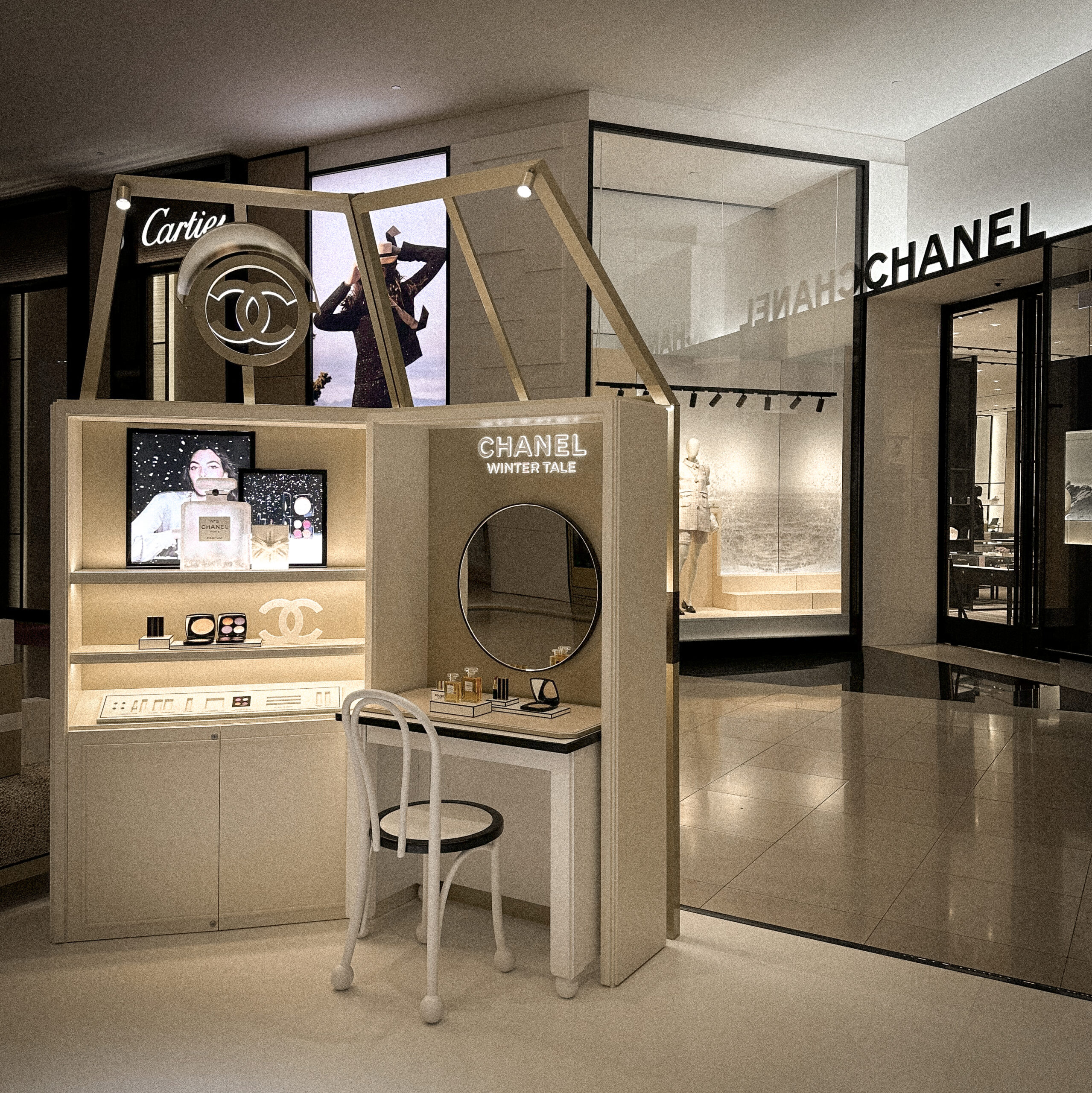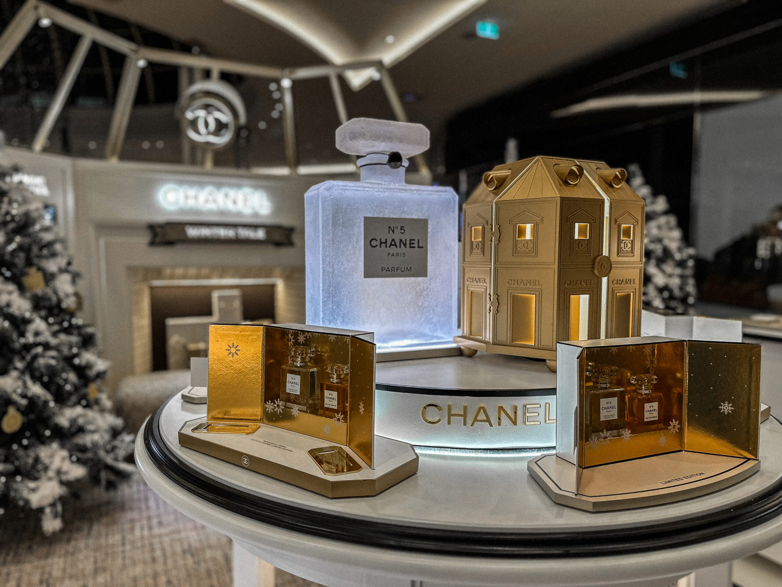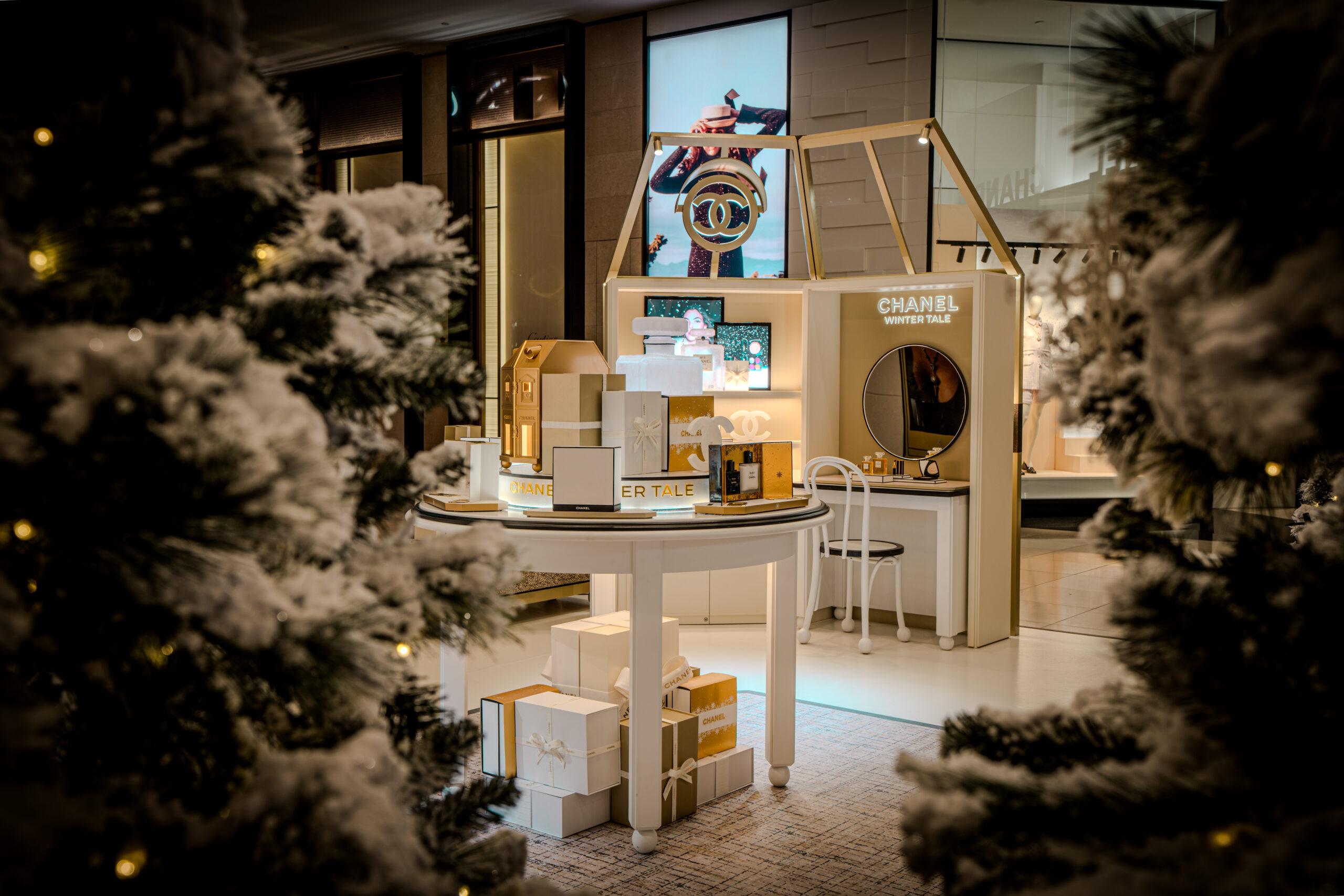The “Winter Tale” fragrance podium is a distilled expression of seasonal luxury – a luminous, sculptural showcase for the reimagined N°5 and Les Exclusifs collections.