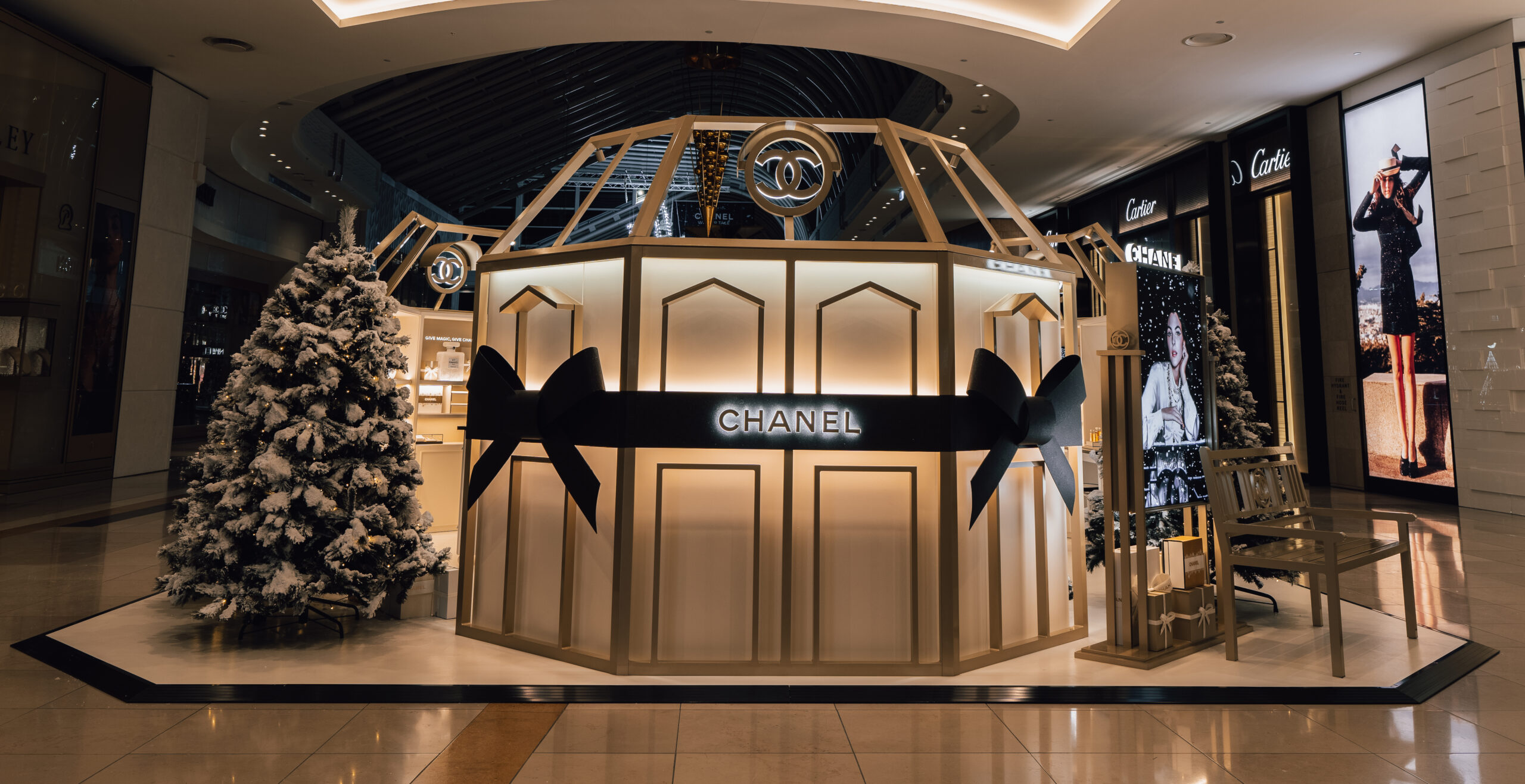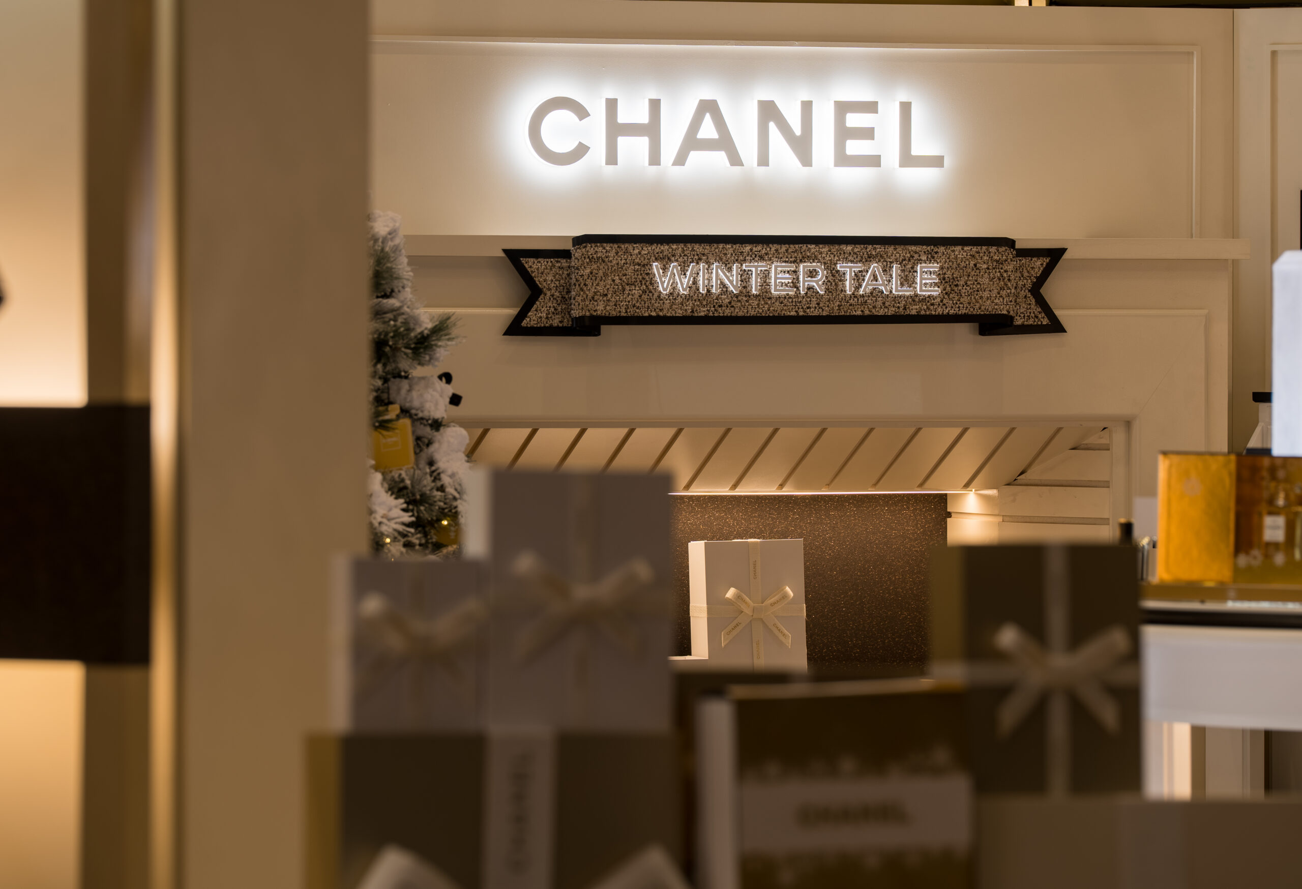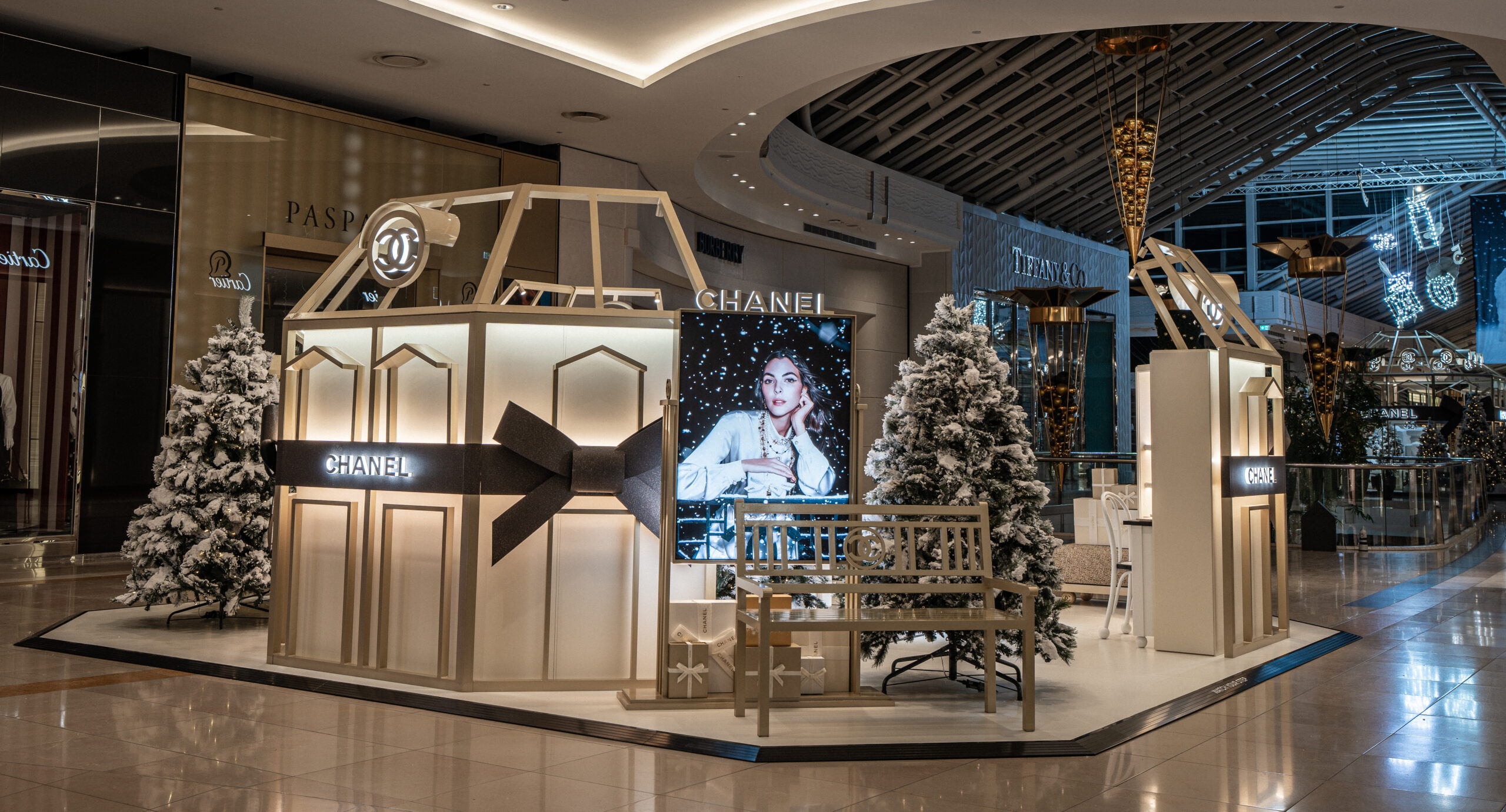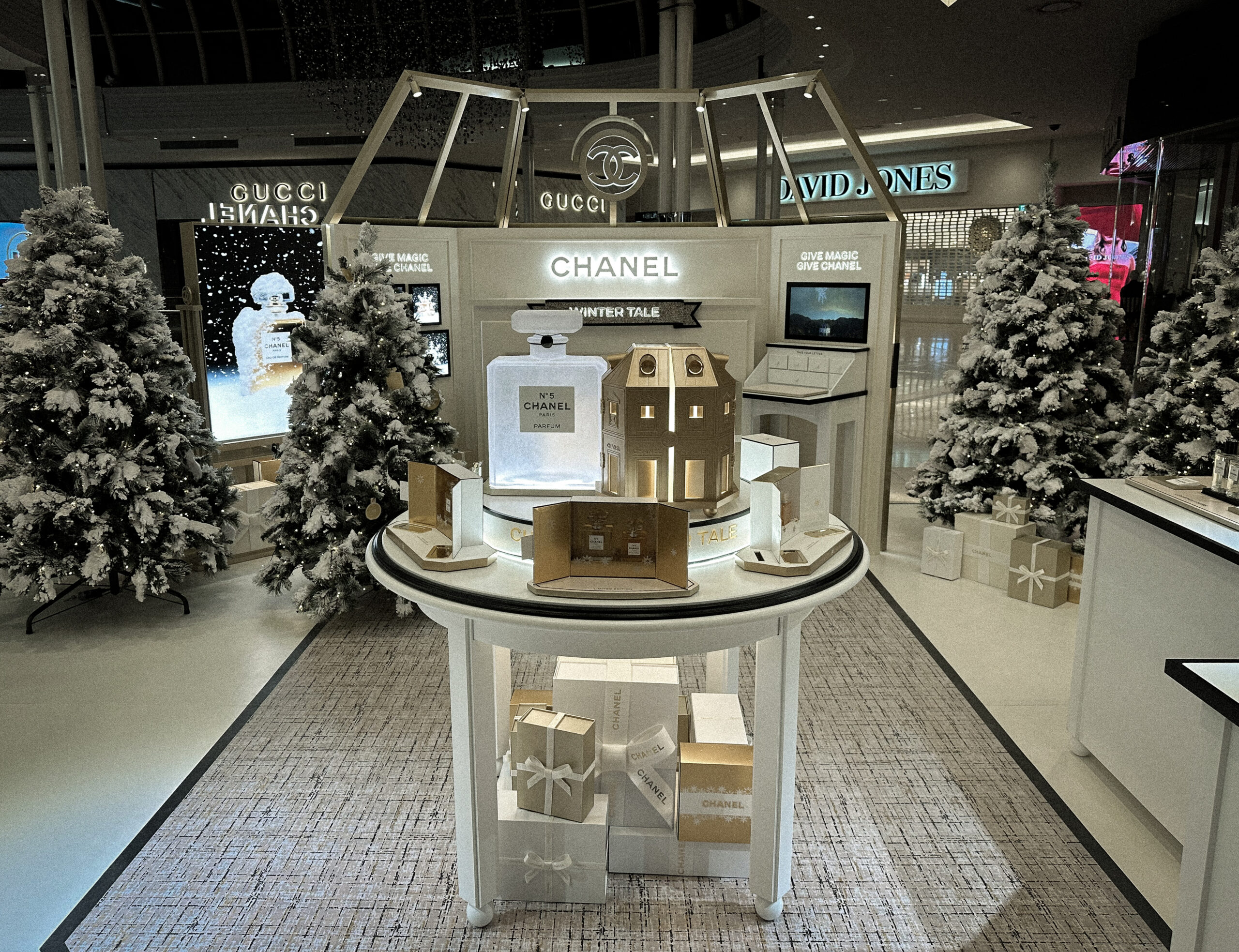 The “Winter Tale” fragrance podium is a distilled expression of seasonal luxury – a luminous, sculptural showcase for the reimagined N°5 and Les Exclusifs collections.
